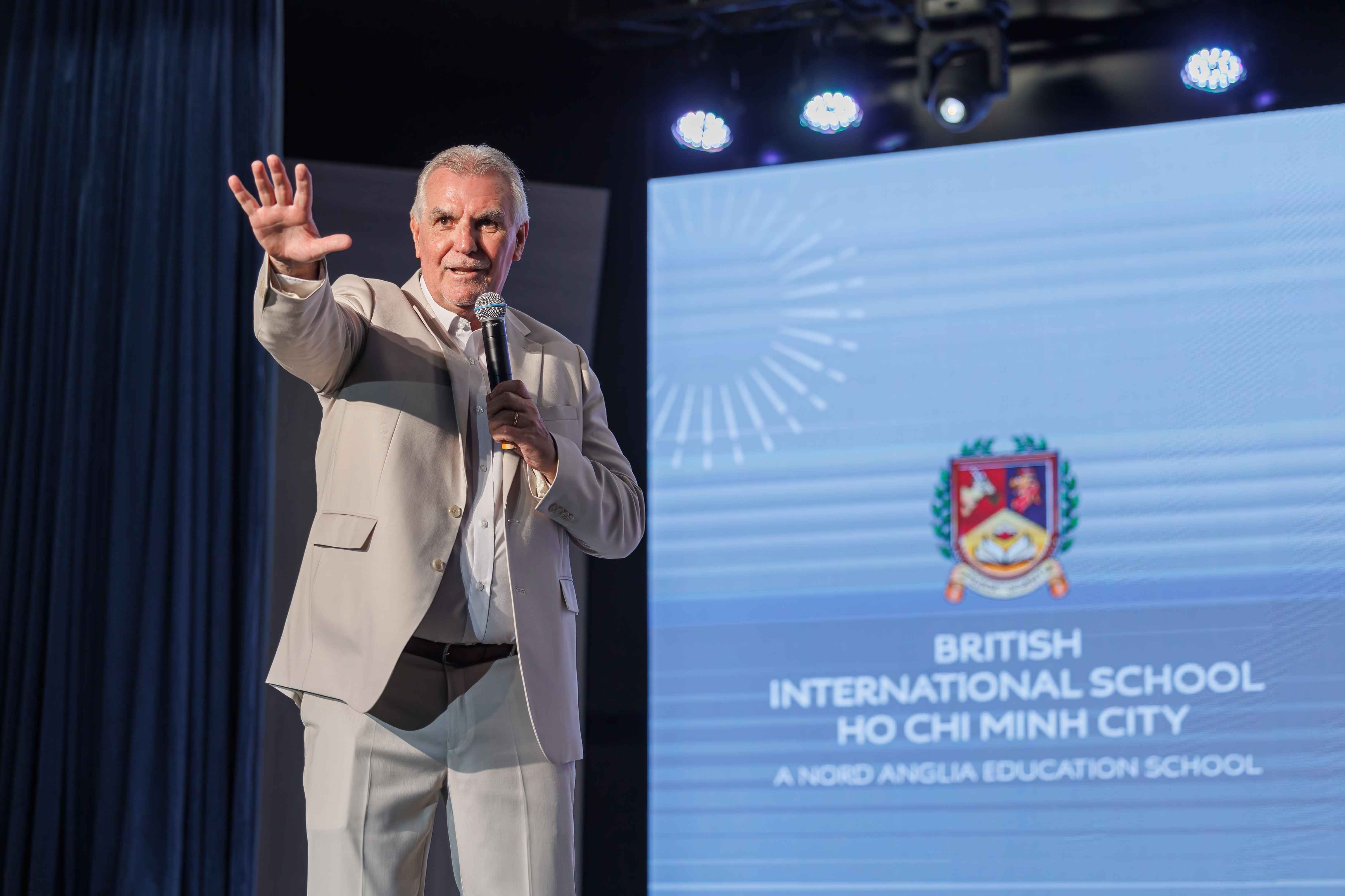 After additional speeches from Shaun Williams and our Principal Mr Anthony Rowlands, the new name was unveiled by our Co-Founders Maurice Nguyen and Rosie Ngo joined by our special guests, Lord David Puttnam the Chair of the Nord Anglia Education Advisory Board and Emily Hamblin, the UK Consul General in Vietnam.