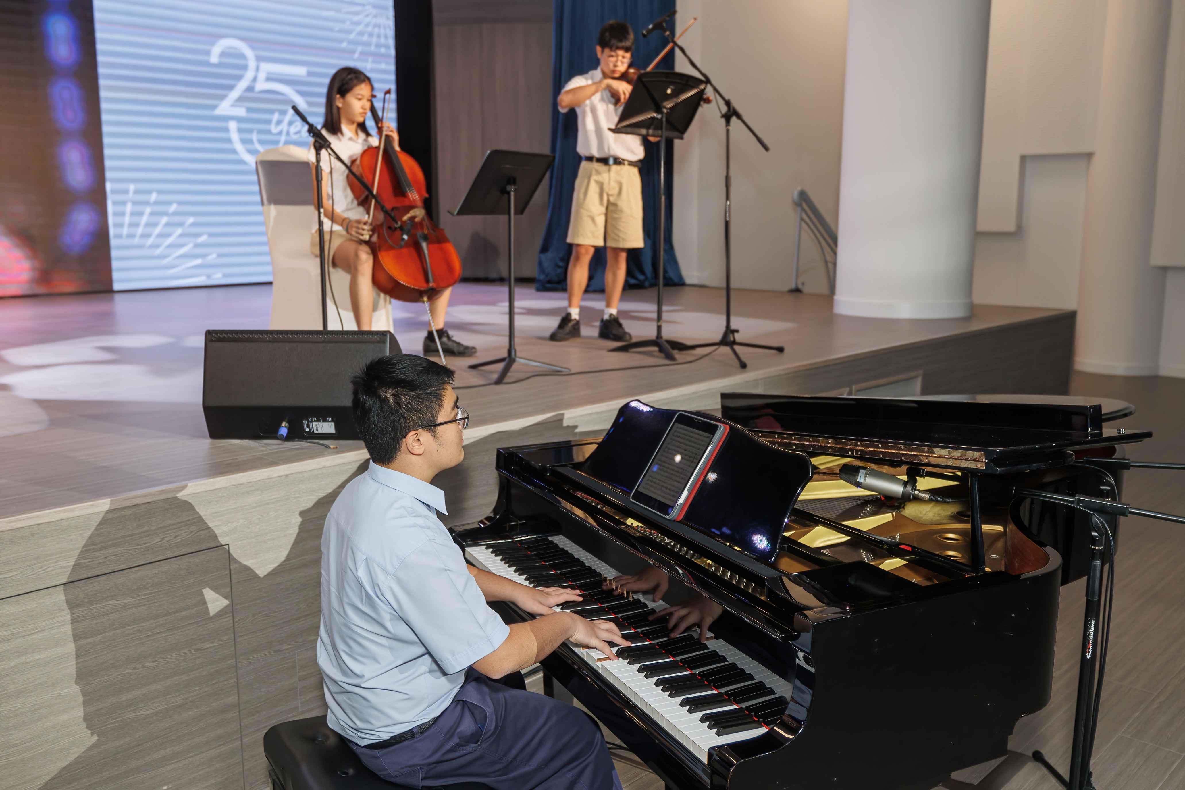 As our special guests walked into our new auditorium, they would have been hard-pressed to miss the slideshow on the almost 14-meter-long hi-resolution digital screen that runs across the stage in 3 parts. They were even more impressed to discover the middle screen opens to reveal special guests and performers for extravagant theatrical entrances when our founders Maurice and Rosie and the inspiration for the school, their daughter Jenny Nguyen appeared through the centre of the screen. Equipped with many safe motion sensors, the unmissable screen will bring our performing arts and assemblies to new levels.