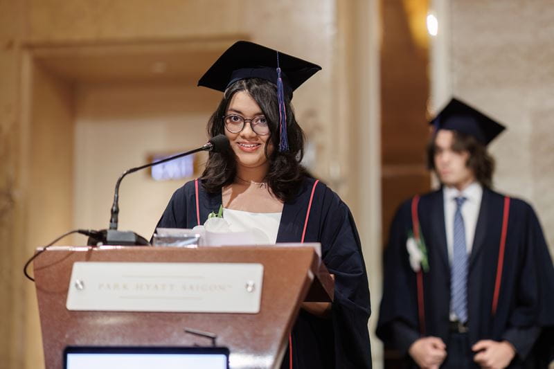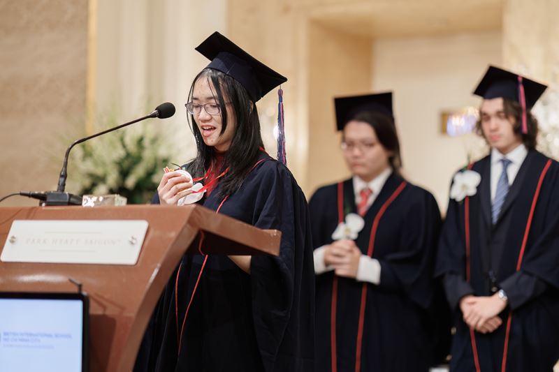 Of course, this sentiment resonated throughout the ceremony, reflecting a truth that transcends generations at this stage in life. This uncertainty, however, isn't something to fear, but rather an opportunity to embrace. You don’t have to have it all figured out. Emily Hamblin, UK Consul General shared her own experiences with uncertainty, how she herself felt pressure after the IB and didn’t know what she wanted to do. She shared that over the years she has changed her mind several times, from an accountant to working for an NGO in Nepal and now she stands before us representing the UK in HCMC, with many decisions yet to come in her career. Her story is a powerful testament to the fact that life is a continuous exploration, one that doesn't require a pre-written script. The key, lies in resilience, perseverance, and unwavering confidence – qualities instilled within every BIS student.